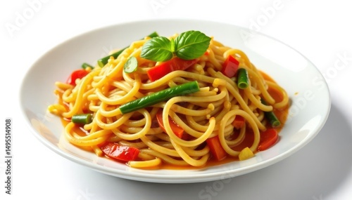 Stir-fried noodles with vegetables, isolated on white , china, healthy