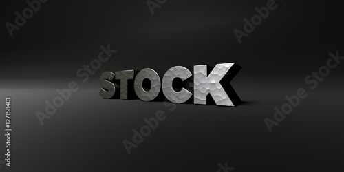 STOCK - hammered metal finish text on black studio - 3D rendered royalty free stock photo. This image can be used for an online website banner ad or a print postcard.