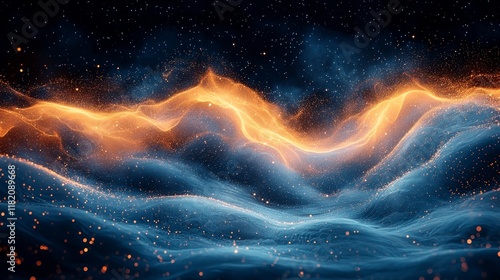 Stock abstract background. Technology digital illustration with a blue stream of lines. Futuristic motion graphic design. Energy pattern with modern space wave structure. Light backdrop