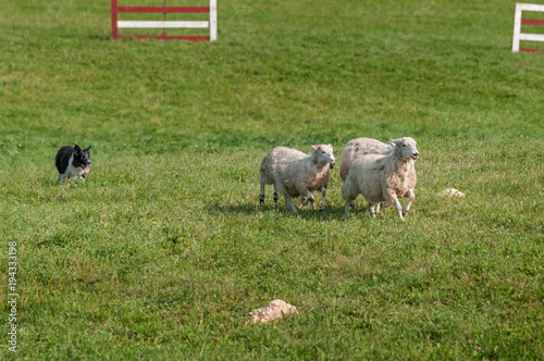 Stock Dog Runs Sheep (Ovis aries) Through Herding Course