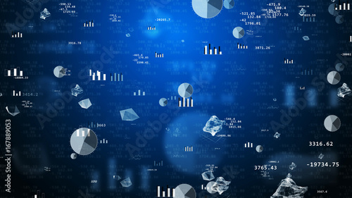 Stock exchange values with flying graphs