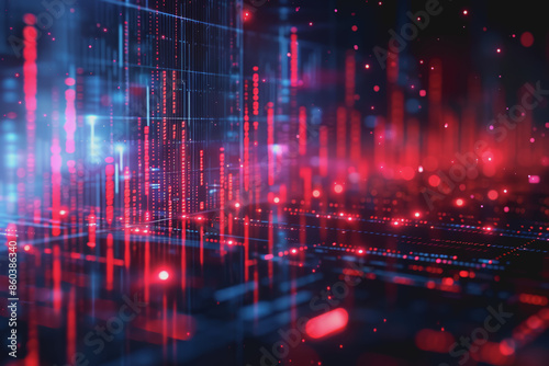 Stock market chart lines and financial graphs on technology abstract background.