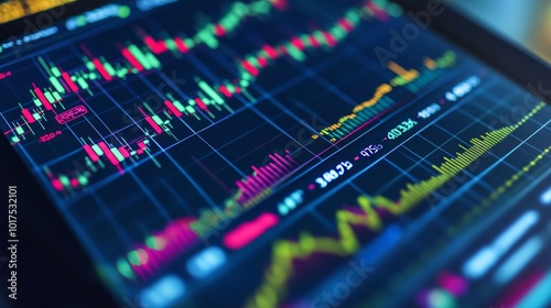 Stock market growth financial success results monitored on a tablet or phone numbers and arrows 3d close up view 4k 30fps