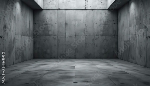 stock photo features a 3D-rendered empty and dark abstract concrete room interior