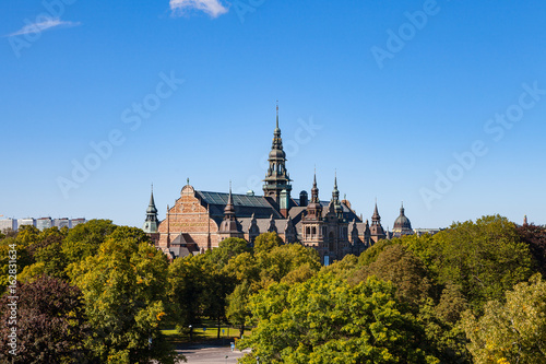STOCKHOLM, SWEDEN - SEPTEMBER 18, 2016: Aerial view of the Nordic Museum in summer sunny day with many trees