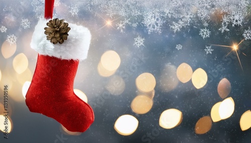 Stocking Hanging Christmas Tree. Red Sock - Christmas Stocking With Santa Claus And Christmas Tree