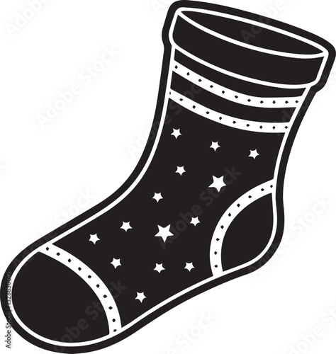 stocking vector illustration, stocking clipart, stocking silhouette vector icon black and white