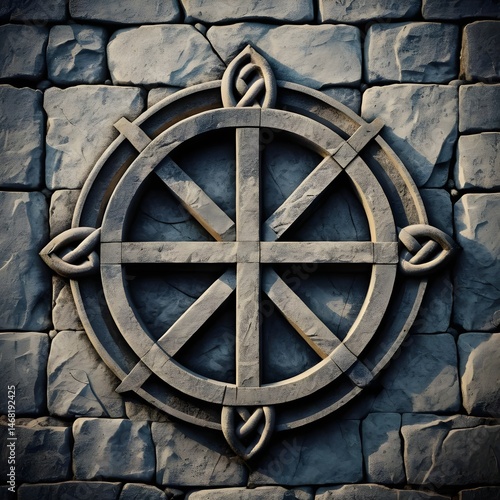 Stone Celtic Knot Wheel on Ancient Wall