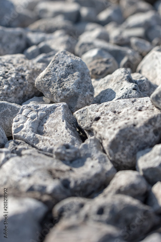 Stone crushed stone on the construction site as an abstract background