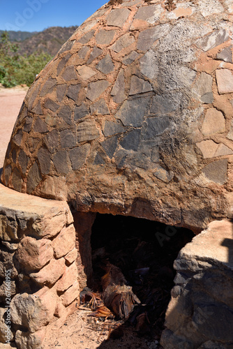 Stone oven for cooking agave hearts at a tequila factory Jelisco Mexico