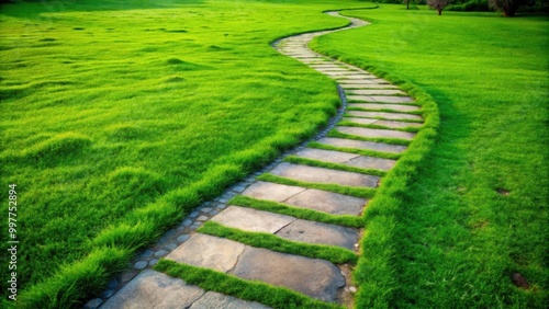 Stone path winding through lush green grass, stone, path, grass, nature, outdoors, walkway, tranquil, scenic, greenery