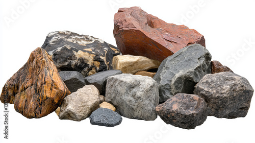 Stone rock rockstone mountain or rocky cliff with stony materials of geology in Rockies mountainous stoniness illustration set isolated on white background