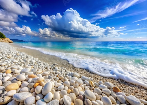 Stone stairs leading to colorful seascape, Puglia, Italy. Ai Generated