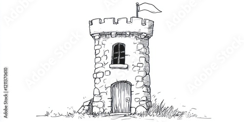 Stone Tower With Flag A Simple Drawing Of A Castle