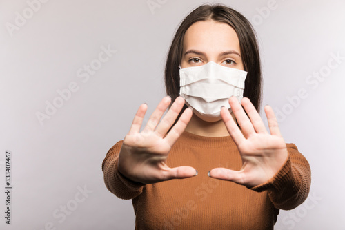 Stop coronavirus infection. The girl in the mask.