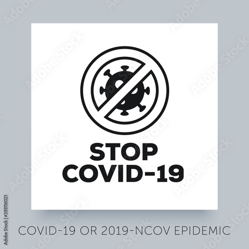 Stop Covid-19 icon with red prohibit sign. Simple flat no infection and stop coronavirus concept. Coronavirus pandemic symbol. Stay home to stop virus.