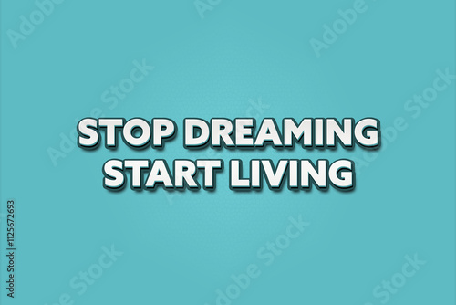 Stop Dreaming, Start Living. A Illustration with white text isolated on light green background.