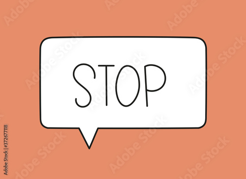 Stop inscription. Handwritten lettering illustration. Black vector text in speech bubble. Simple outline marker style. Imitation of conversation.
