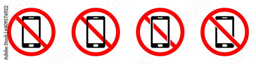 Stop phone sign. No phone. No smartphone signs set. Vector illustration.