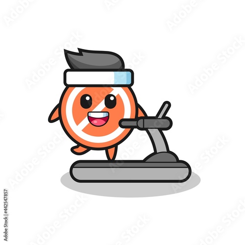 stop sign cartoon character walking on the treadmill