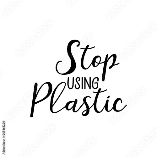 Stop using plastic. Lettering. Ink illustration. Modern brush calligraphy Isolated on white background