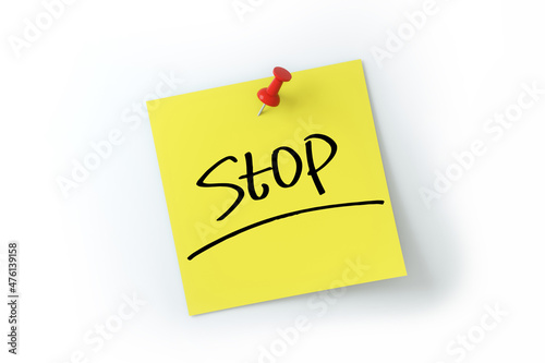 stop written on yellow sticker note over white background