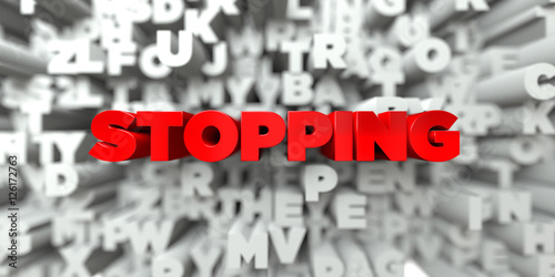STOPPING - Red text on typography background - 3D rendered royalty free stock image. This image can be used for an online website banner ad or a print postcard.