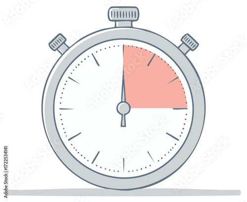 Stopwatch timing illustration, quarter time period, deadline concept, cartoon clock, timer