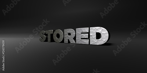 STORED - hammered metal finish text on black studio - 3D rendered royalty free stock photo. This image can be used for an online website banner ad or a print postcard.