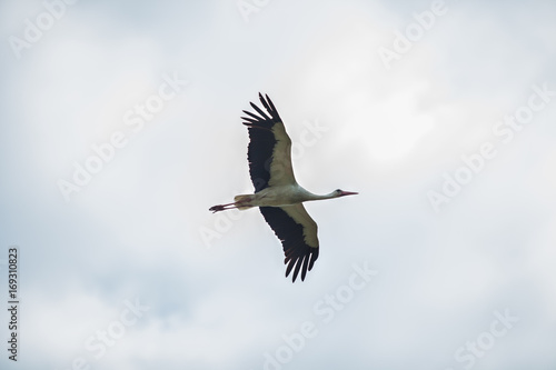 Stork flying home