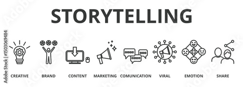 Storytelling banner concept of creative, brand, content, marketing, communication, viral, emotion, and share icon vector illustration