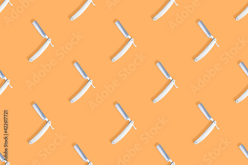 Straight razor seamless pattern. Background on the theme of a hairdressing salon.