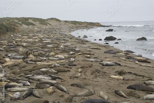 Strand voll mit Seeelefanten in Kalifornien, USA
