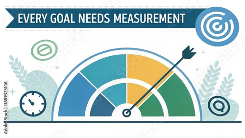 Strategic Measurement for Achieving Goals with Target Icon, Timer, and Colorful Gauge in a Clean Design Format