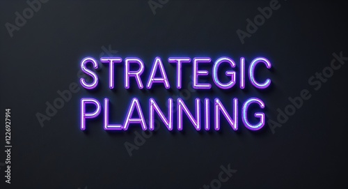 strategic planning word lettering with neon blue glow on plain black dark background