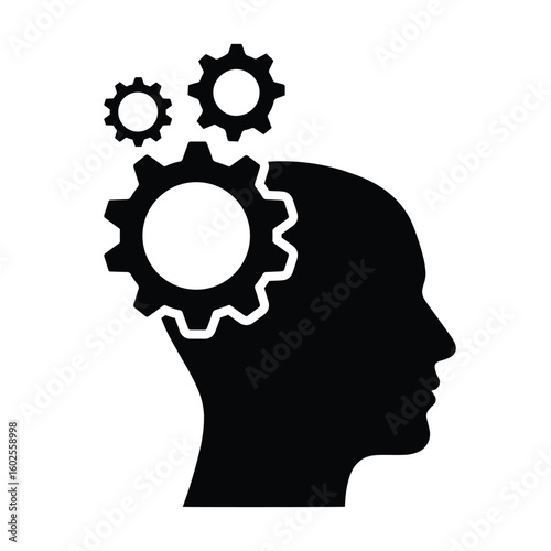 Strategic Thinking Icon – Brainstorming Head with Gears Vector Symbol for Innovation and Planning