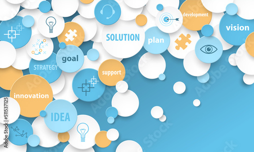 Strategy – solution – idea – goal – innovation – development – vision – plan vector business concept on dark blue background