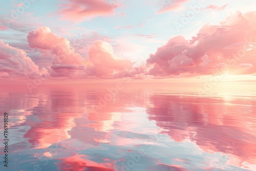 Stratospheric clouds in a blend of coral and peach tones, set against a soft salmon-colored sky, reflecting the warmth and tranquility of a peaceful sunset