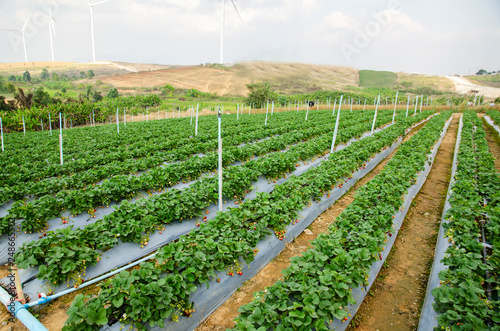 Strawberry farm and wind turbine farm