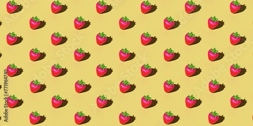 Strawberry on yellow background. For cafe, menu, restaurant. 3d template background.