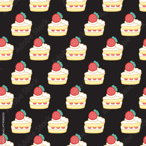 Strawberry Shortcake Slices Bakery Cake Pattern. Perfect for dessert-themed designs, bakery packaging, cafe branding, etc. Ideal for sweet lovers, food illustrations, fun bakery vibe