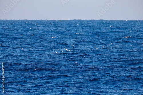 沖を飛翔する美しいオオミズナギドリ(ミズナギドリ科)。 英名学名:Streaked Shearwater, Calonectris leucomelas 東海汽船東京湾〜伊豆諸島八丈島、太平洋航路の橘丸船上にて - 2025