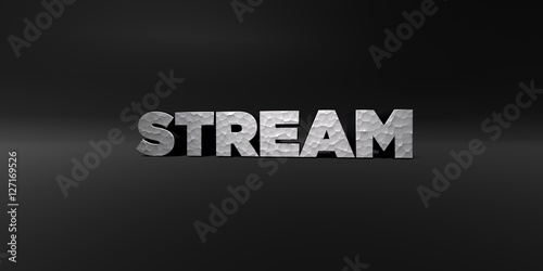 STREAM - hammered metal finish text on black studio - 3D rendered royalty free stock photo. This image can be used for an online website banner ad or a print postcard.