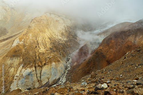 Stream from melting of glaciers on the active volcano Mutnovsky.