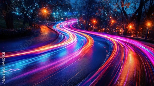 Streams of light trails creating intricate patterns, organic shapes, vibrant and captivating.