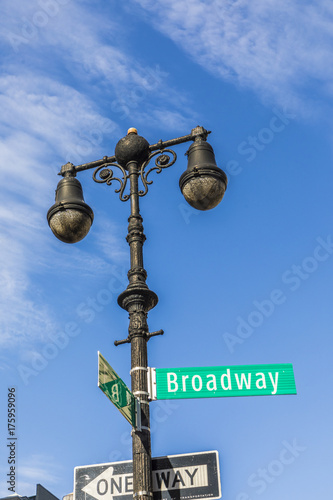 street sign Broadway at vintage lantern post