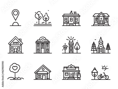 Street View line art illustration for urban scenery