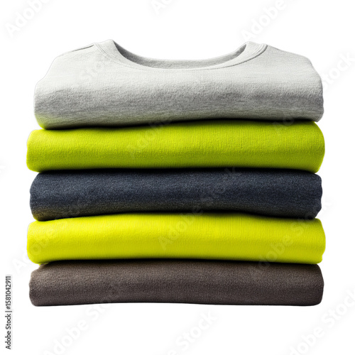 Stretch jersey fabric stack in sporty tones. Isolated white background. Png format