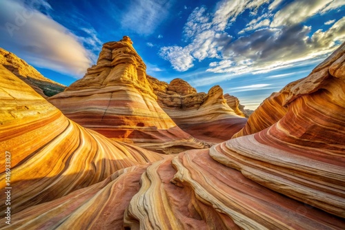 Striated Rock Formations Under Blue Sky