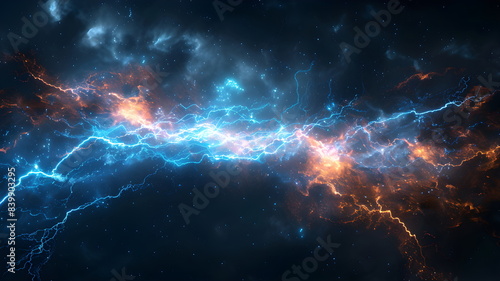 Strike of lightning on dark, futuristic light background